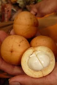 Buah mirip manggus tapi kulitnya kekuning-kuningan, buah ini sekarang jarang terlihat lagi karena penebangan hutan untuk ladang